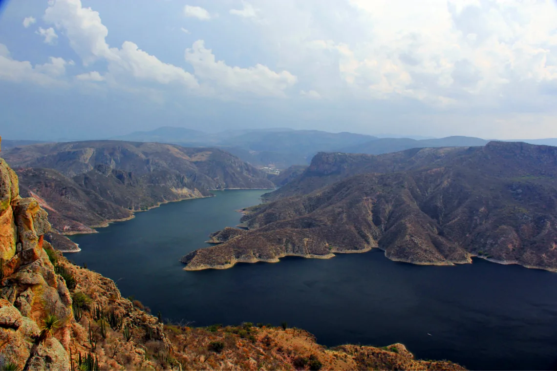 Continuando la travesía, visitaremos la famosa Presa de Zimapán, una obra de ingeniería rodeada de montañas y cañones que regalan vistas espectaculares. En sus orillas se extiende el agua reflejando el contorno de los cerros, mientras el ambiente fresco invita a pasear y disfrutar la tranquilidad del entorno. Si las condiciones lo permiten, podrás presenciar el movimiento de las embarcaciones y la vida silvestre local, además de apreciar la magnitud de la presa desde sus miradores.