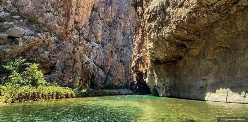 Comenzamos nuestro recorrido por sendero hasta llegar al cruce del Río con una duración de 2 horas 30 min aproximadamente para llegar a la gruta seca donde se aprecian estalactitas y estalagmitas atravesando subterráneamente 300 metros y salir al cañón donde se hace un descenso para llegar a la gruta del origen del agua termal donde podrás nadar y realizar saltos ya que cuenta con partes profundas (6 metros).