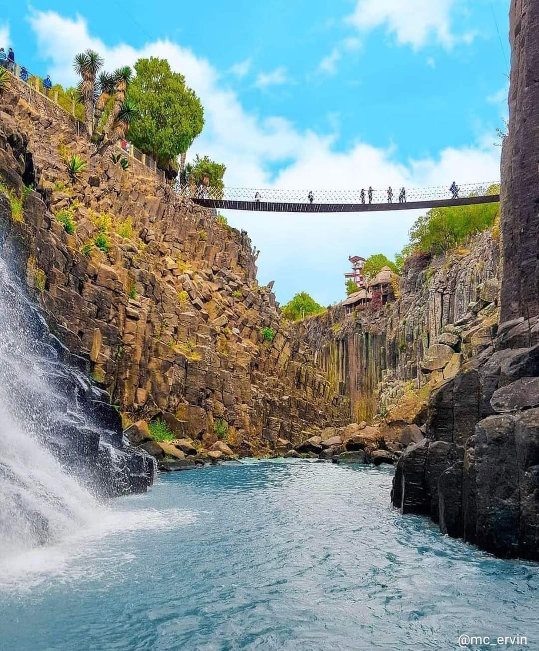 Otra parada imprescindible será en los famosos prismas basálticos de Huasca de Ocampo. Este espectáculo natural, formado por columnas de basalto creadas por el enfriamiento de lava hace millones de años, se acompaña del sonido relajante de las cascadas que atraviesan las formaciones rocosas. Los visitantes podrán admirar la belleza del paisaje, caminar por los puentes colgantes y tomar fotografías únicas de uno de los principales atractivos turísticos de la región. Además, habrá tiempo para disfrutar del entorno, explorar los senderos y apreciar la magnitud de este fenómeno geológico.