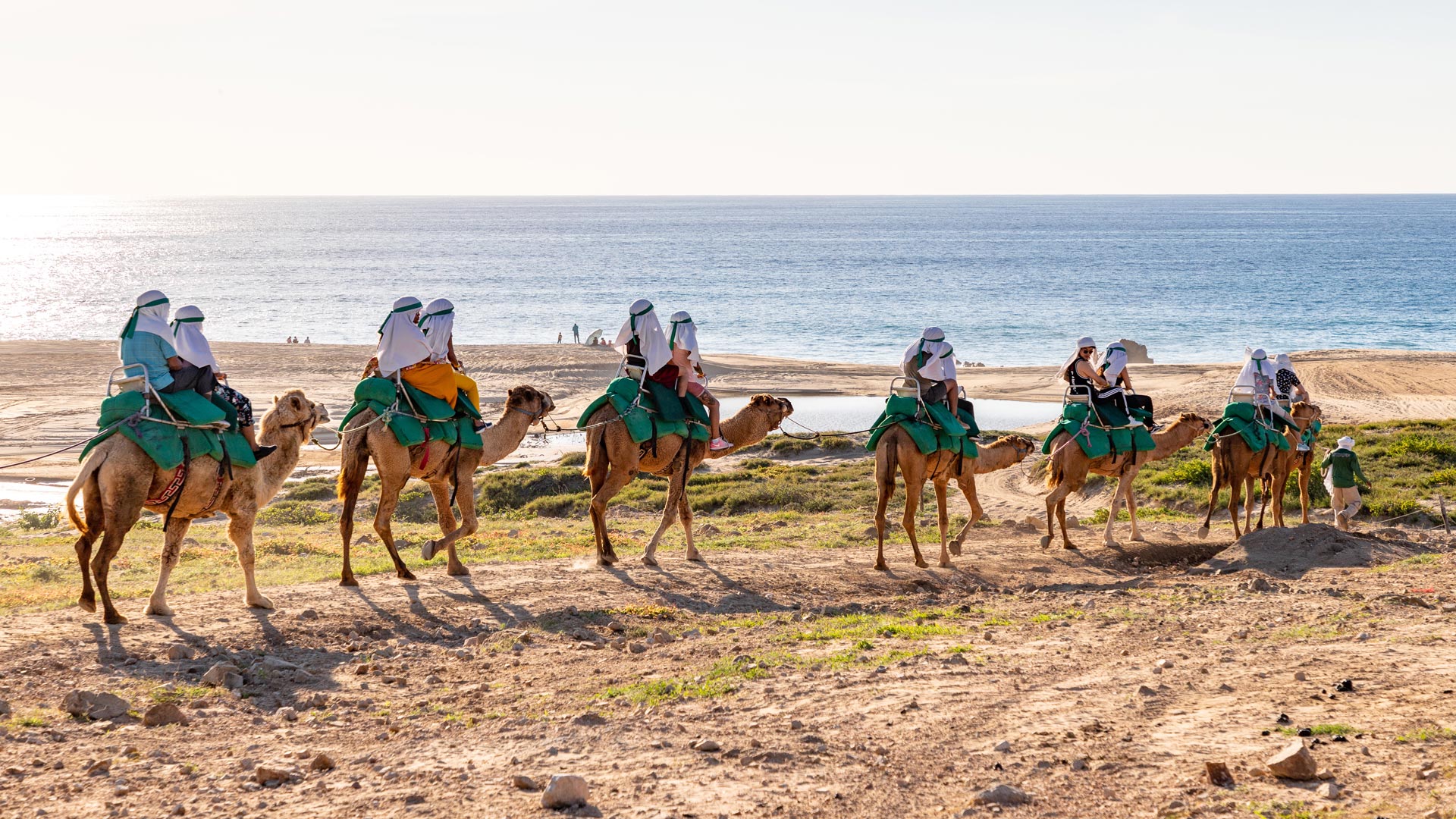 Martes 17 feb. Desayuno incluido. Caminaremos a la Marina de Los Cabos para realizar Tour por el Arco, observar la separación del Mar de Cortes y del Pacífico, descenderemos a Playa del Amor. Regresaremos al Hotel para realizar nuestro Tour en Camellos (Cubre cuerpo de Sol, recorrido en Monta, caminata por el área de flora y fauna, comida buffet).